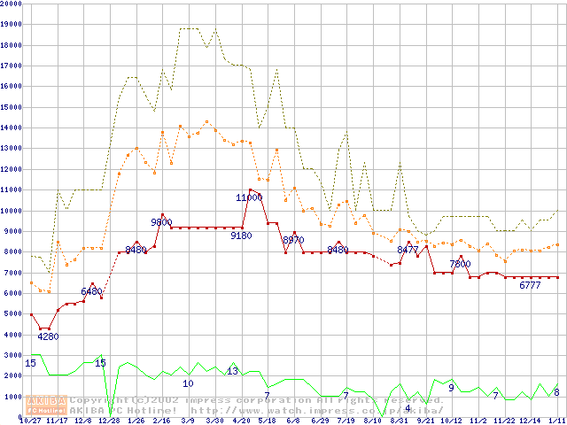 PC133 SDRAM DIMM CasLatency=3 ECC対応 Registeredタイプの最安値推移