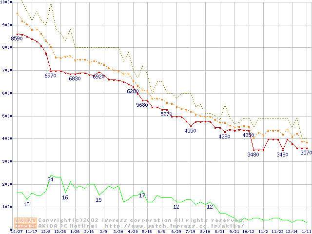 Socket A (PGA,FSB 200MHz,L2 64KB,Morgan)の最安値推移