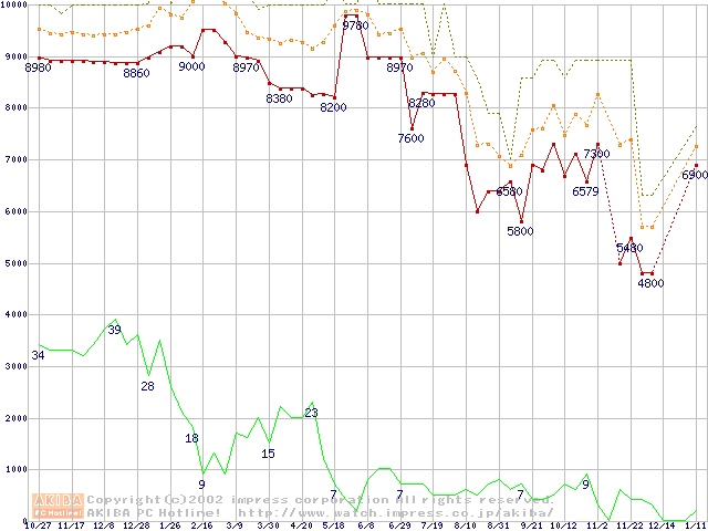 Celeron 1GHz FC-PGA リテールパッケージの価格推移