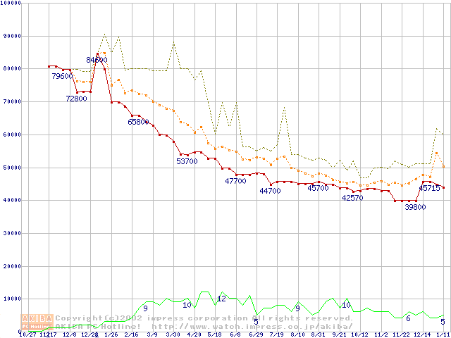 PC2100(DDR266) DDR SDRAM DIMM ECC対応 Registeredタイプの最安値推移