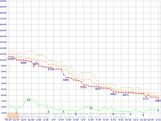 Duron 1.1GHz バルクの価格推移