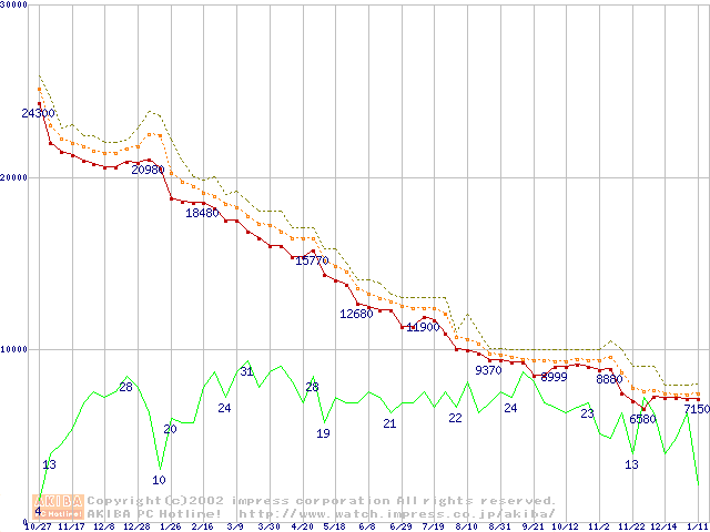 Athlon XP 1700+ (1.47GHz) リテールパッケージの価格推移