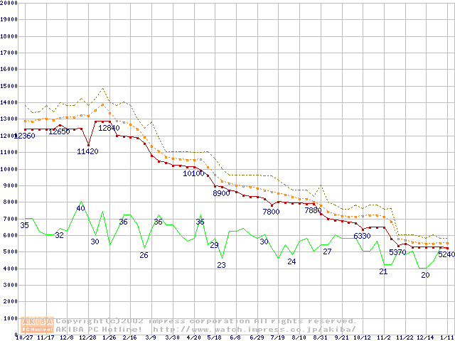 Celeron 1.20GHz FC-PGA2 リテールパッケージの価格推移