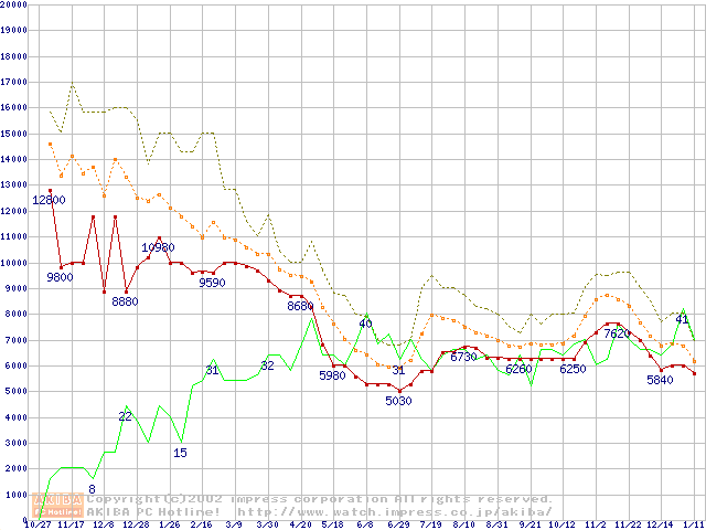 メモリ主要製品の最安値推移