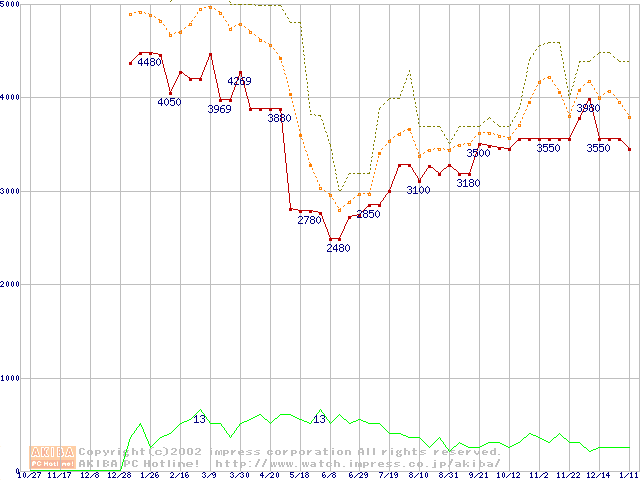 PC2100(DDR266) DDR SDRAM DIMM(CL 2.0)の最安値推移