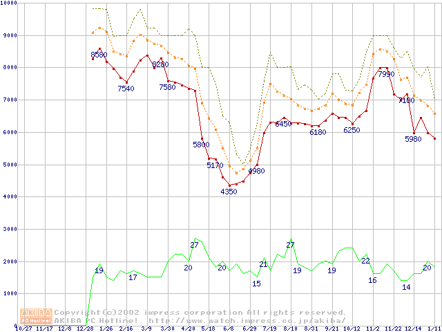 メモリ主要製品(最安値5千円~1万円未満)の最安値推移