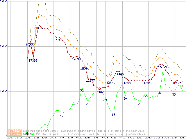 メモリ主要製品の最安値推移