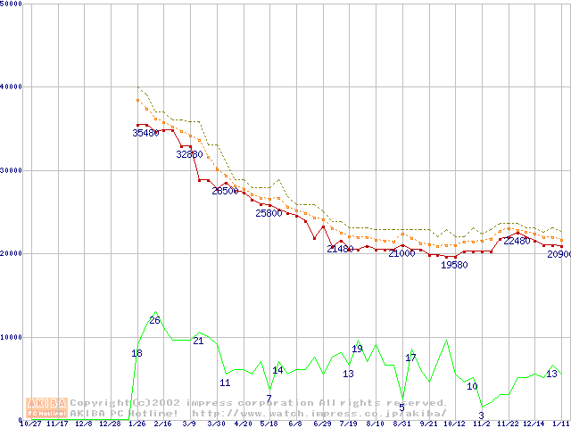 WD Caviar(Special Edition) (7200rpm,UltraATA/100,8MB)の最安値推移