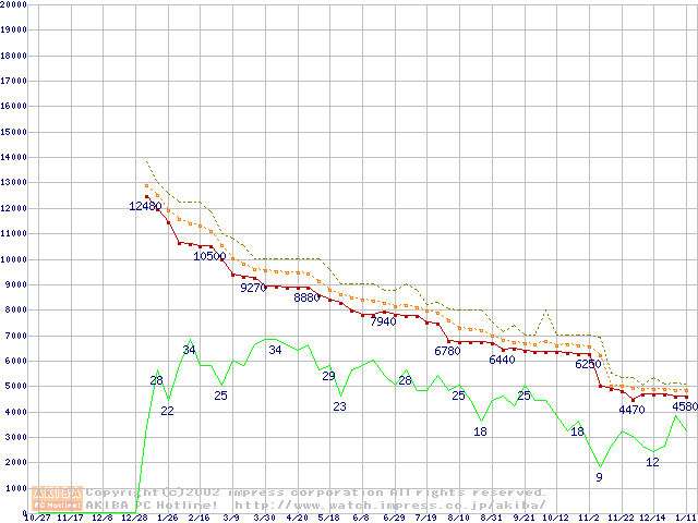 Celeron 1.10A GHz FC-PGA2 リテールパッケージの価格推移