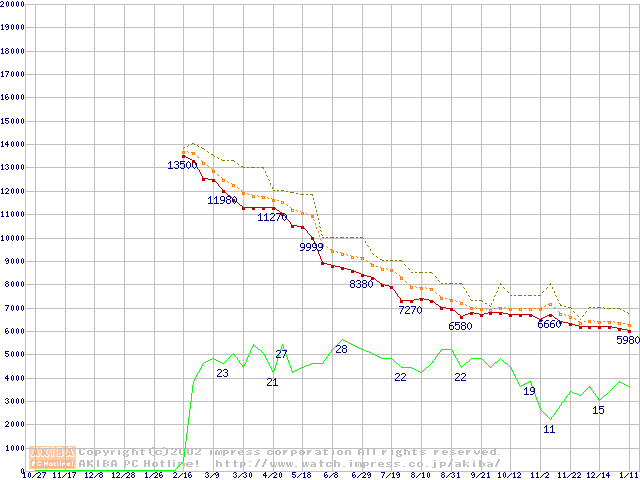 Socket A (PGA,FSB 200MHz,L2 64KB,Morgan)の最安値推移