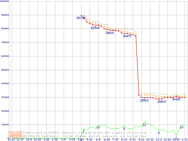 Socket 603 (micro-PGA,FSB 400MHz,L2 512KB,Prestonia)の最安値推移
