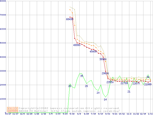 Socket 478 (micro-PGA,FSB 533MHz,L2 512KB,Northwood)の最安値推移