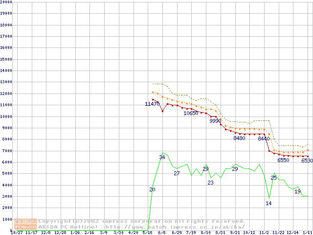 Celeron 1.40GHz FC-PGA2 リテールパッケージの価格推移