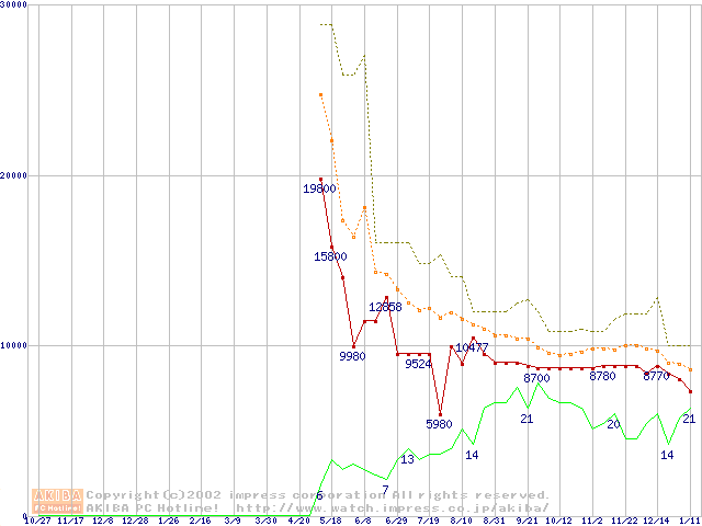 PC3200(DDR400) DDR SDRAM DIMMの最安値推移