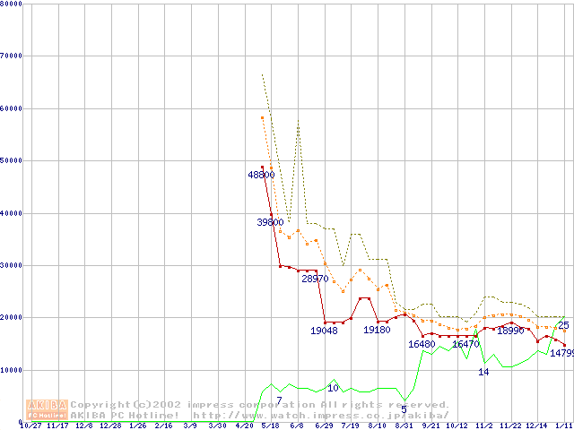 メモリ主要製品の最安値推移