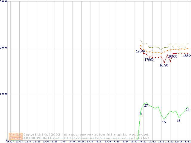 Athlon XP 2200+ (1.8GHz) リテールパッケージの価格推移