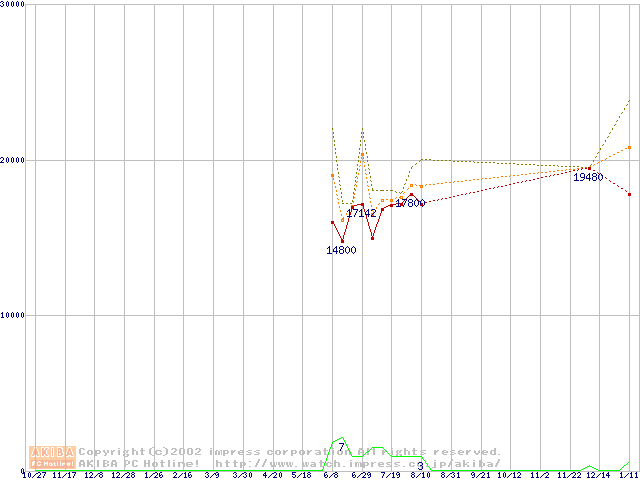 PC2100(DDR266) DDR SDRAM DIMM(CL 2.0) ECC対応 Registeredタイプの最安値推移