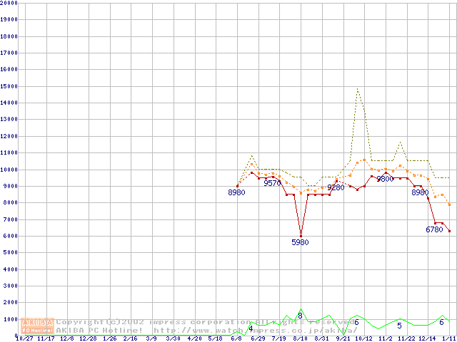 PC1066 DRDRAM RIMMの最安値推移