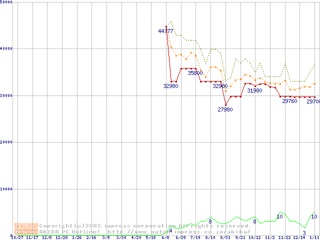 PC800-40 DRDRAM RIMM ECC対応の最安値推移