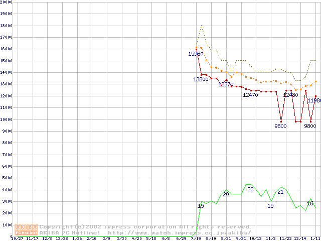 PC1066 DRDRAM RIMM4200(32bit)の最安値推移