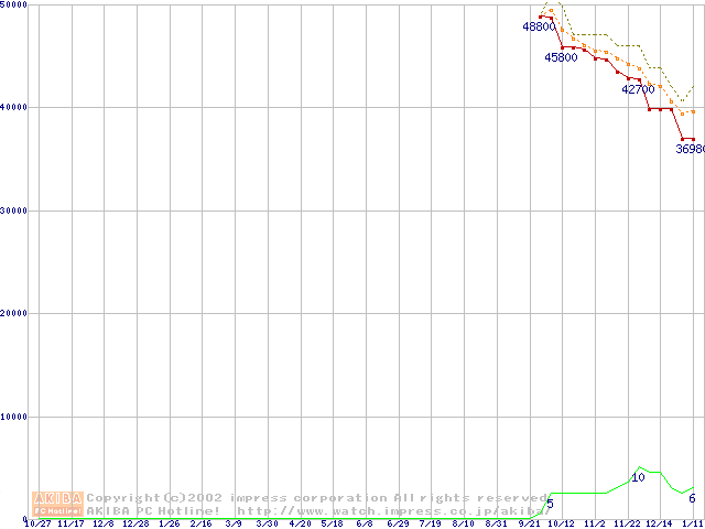 WD Caviar (7200rpm,UltraATA/100,2MB)の最安値推移