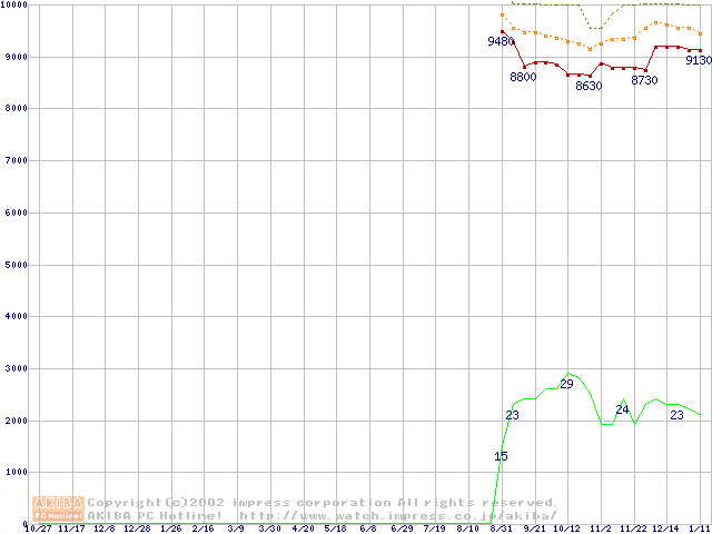 DiamondMax Plus 8 (7200rpm,2MB,UltraATA/133,FDB)の最安値推移