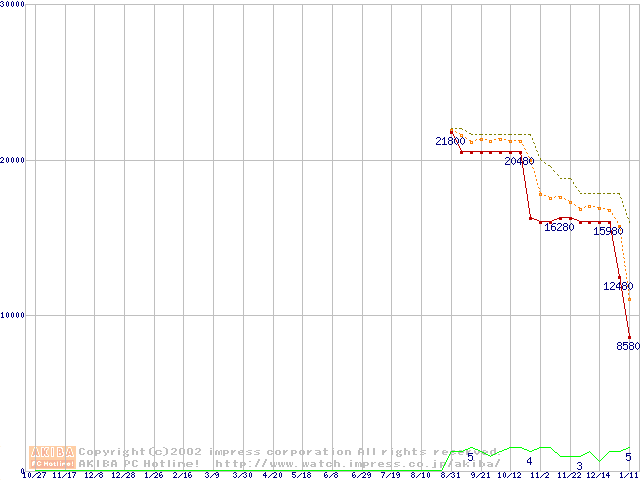 Socket A (OPGA,FSB 200MHz,L2 256KB)の最安値推移