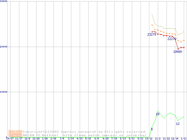 Socket A (OPGA,FSB 266MHz,L2 256KB,Thoroughbred)の最安値推移