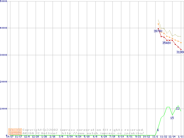 Socket A (OPGA,FSB 333MHz,L2 256KB,Thoroughbred)の最安値推移