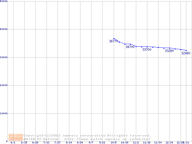 | [↓次グラフ]: | Deskstar 180GXP (7200rpm,2MB,UltraATA/100,FDB)の最安値推移 |