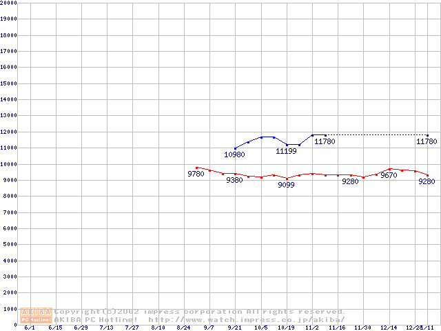 | [↓次グラフ]: | DiamondMax D540X-4G (5400rpm,UltraATA/133,40GB/Platter)の最安値推移 |