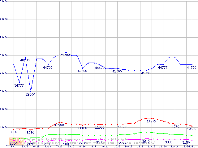 PC2100(DDR266) DDR SDRAM DIMM(CL 2.0)の最安値推移