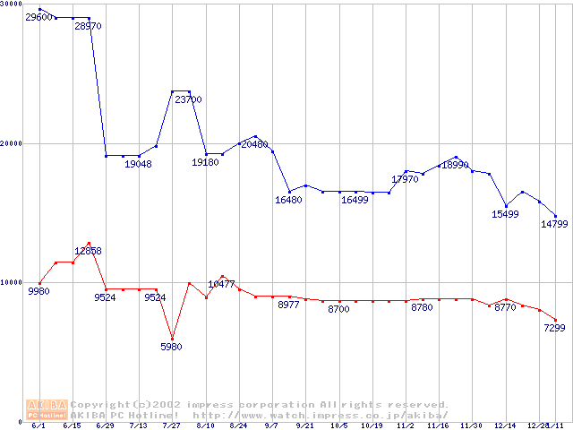 | [↓次グラフ]: | PC3500(DDR433) DDR SDRAM DIMMの最安値推移 |
