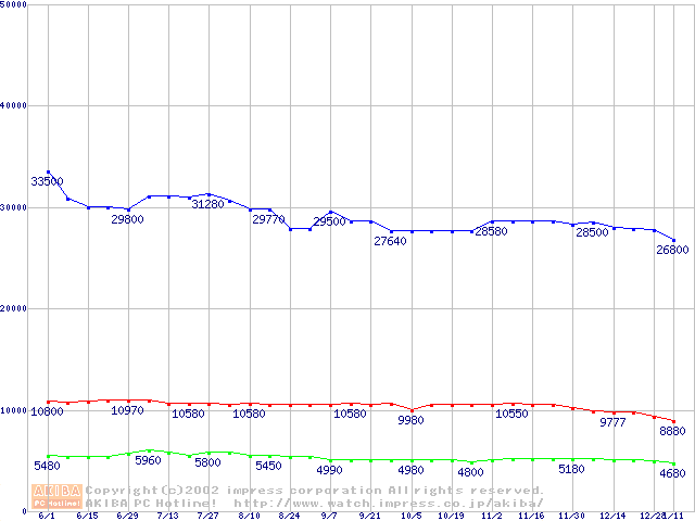 | [↓次グラフ]: | PC800-40 DRDRAM RIMM ECC対応の最安値推移 |