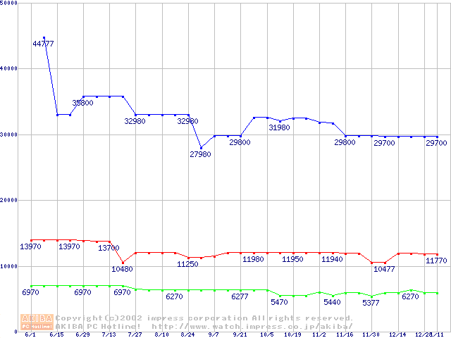 | [↓次グラフ]: | PC800-45 DRDRAM RIMMの最安値推移 |