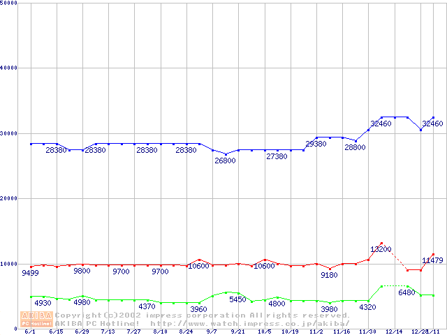 | [↑前グラフ]: | PC800-40 DRDRAM RIMM ECC対応の最安値推移 |