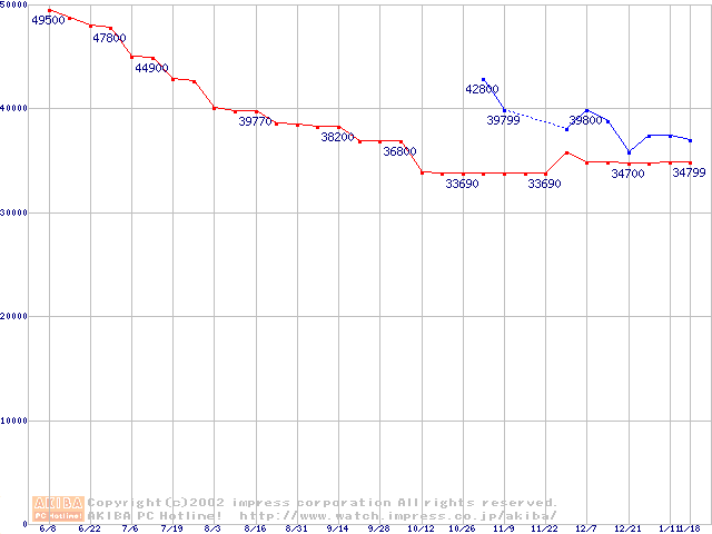| [↓次グラフ]: | 2.5インチHDD 20GB~30GB未満(9.5mm厚)の最安値推移 |