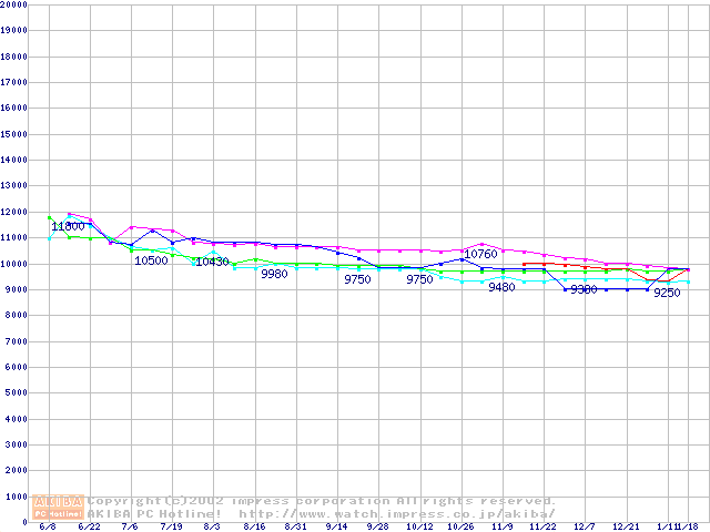 | [↓次グラフ]: | 2.5インチHDD 30GB~40GB未満(9.5mm厚)の最安値推移 |