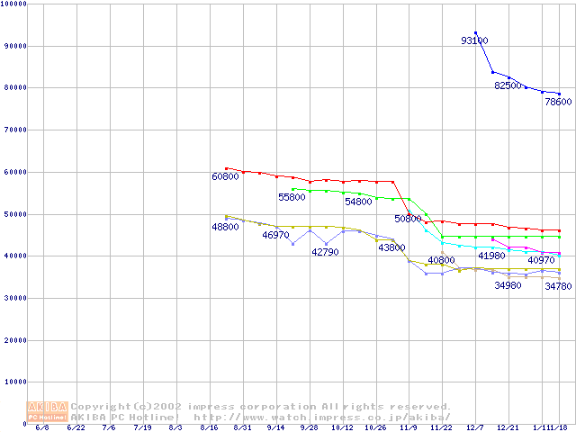 CPU主要製品(最安値3万円以上)の最安値推移