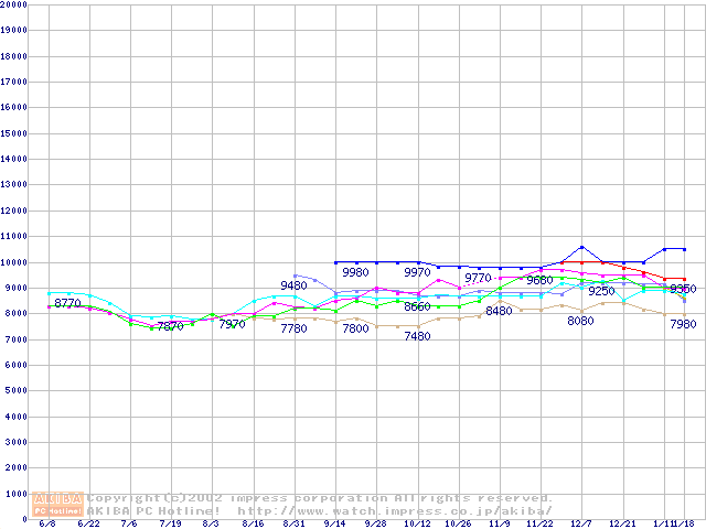 | [↓次グラフ]: | HDD 60GB~80GB未満(7200rpmクラス)の最安値推移 |