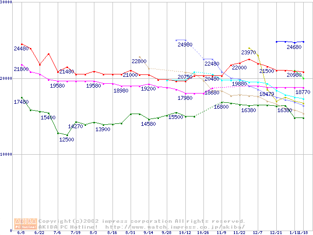 HDD 160~200GB未満(7200rpmクラス)の最安値推移