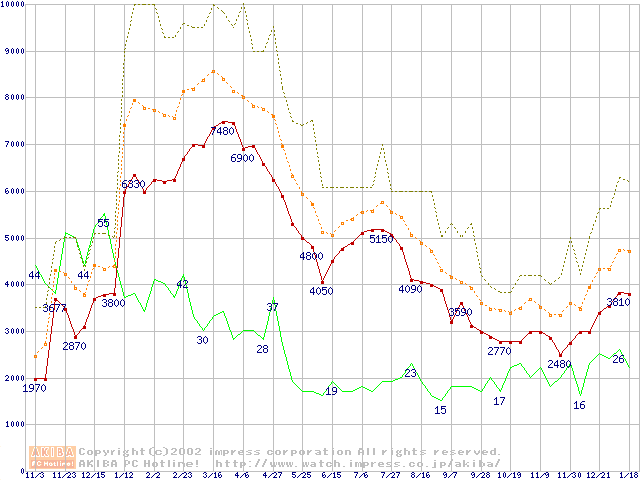 PC133 SDRAM DIMM CasLatency=2の最安値推移