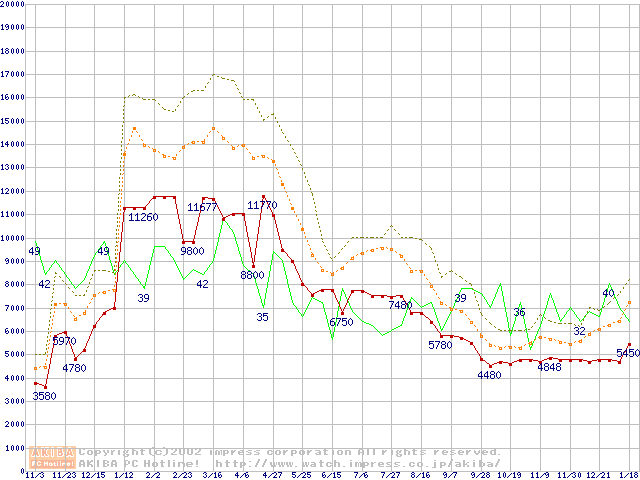 PC133 SDRAM DIMM CasLatency=3の最安値推移