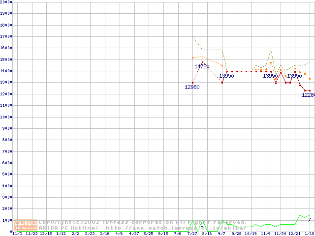 Socket 370 (FC-PGA,FSB 133MHz,L2 256KB,Coppermine)の最安値推移