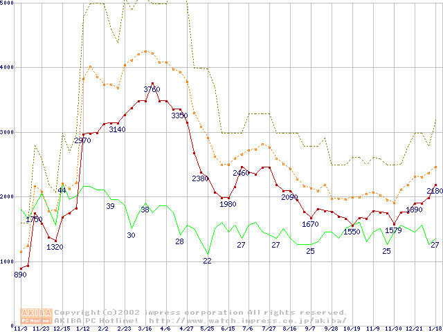 PC100 SDRAM DIMM CasLatency=2の最安値推移