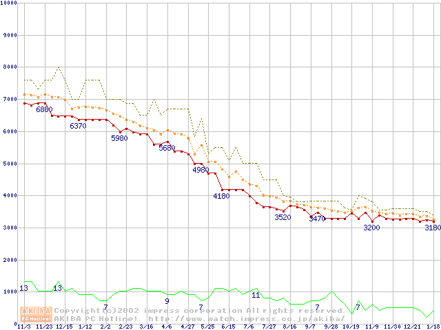 Socket A (PGA,FSB 200MHz,L2 64KB,Spitfire)の最安値推移