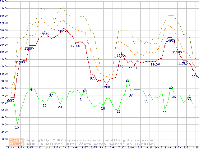 メモリ主要製品の最安値推移