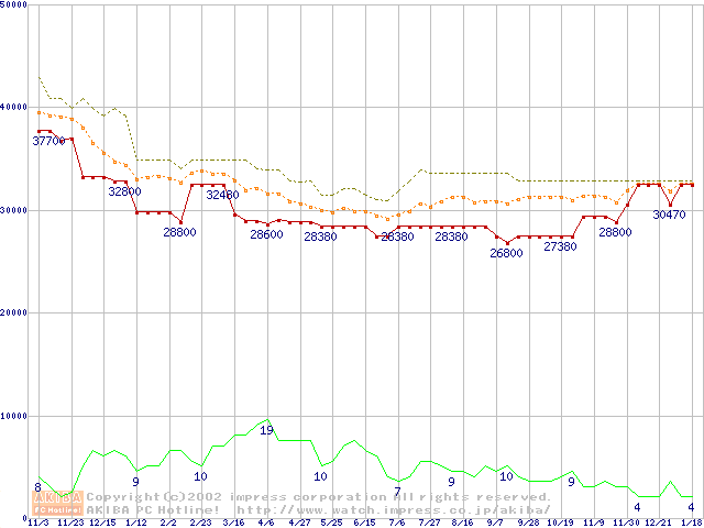 PC800-45 DRDRAM RIMMの最安値推移