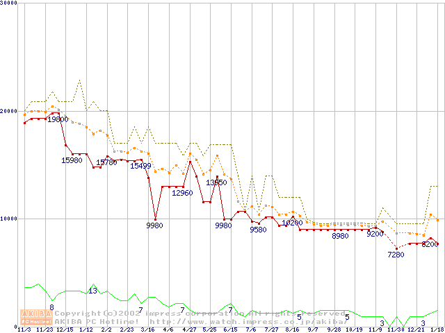 Socket A (PGA,FSB 200MHz,L2 256KB,Palomino)の最安値推移