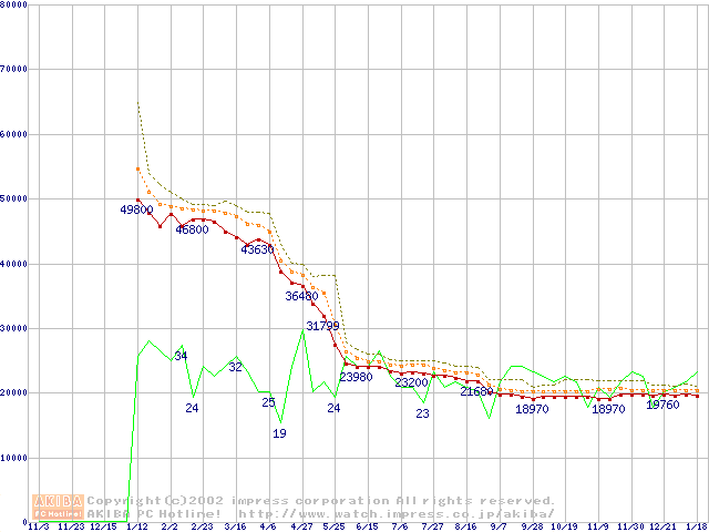 Pentium 4 2A GHz リテールパッケージの価格推移
